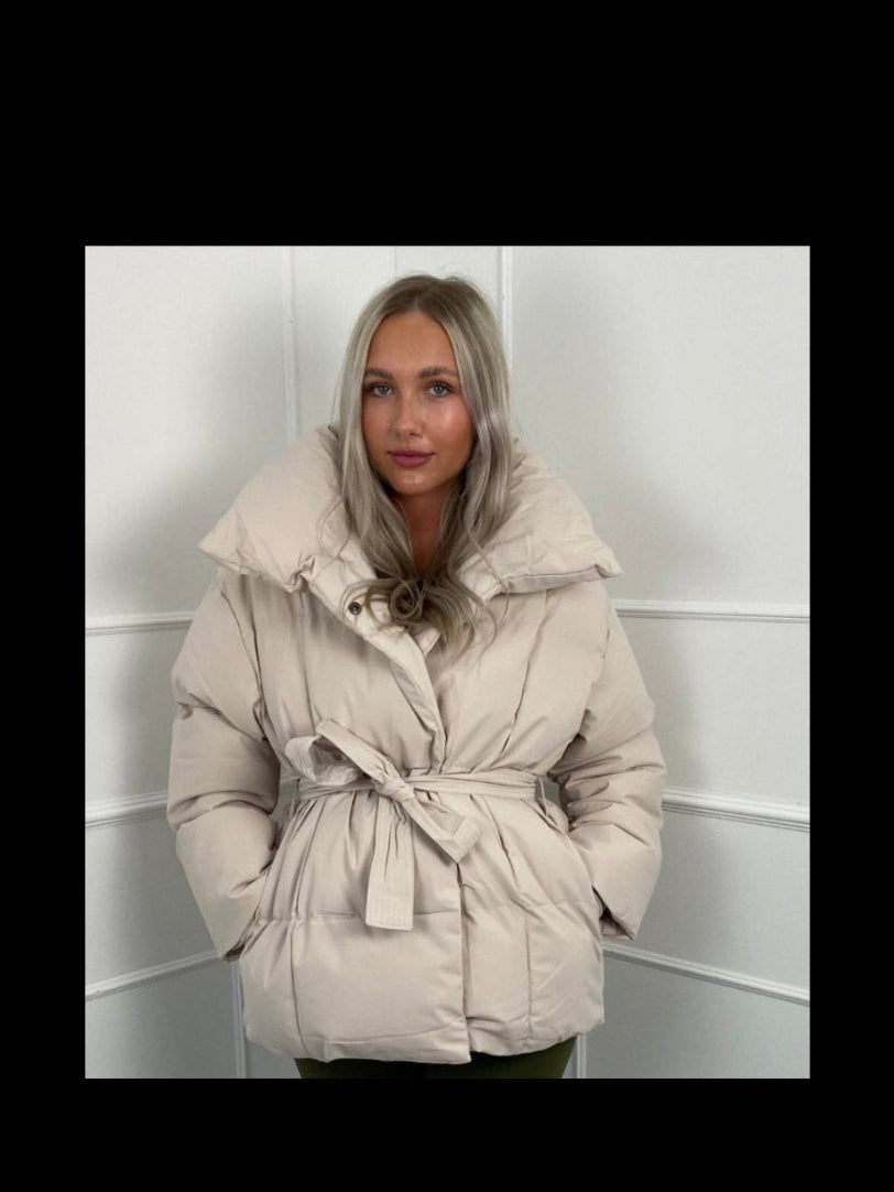 Type: Kort pufferjakke med bælte