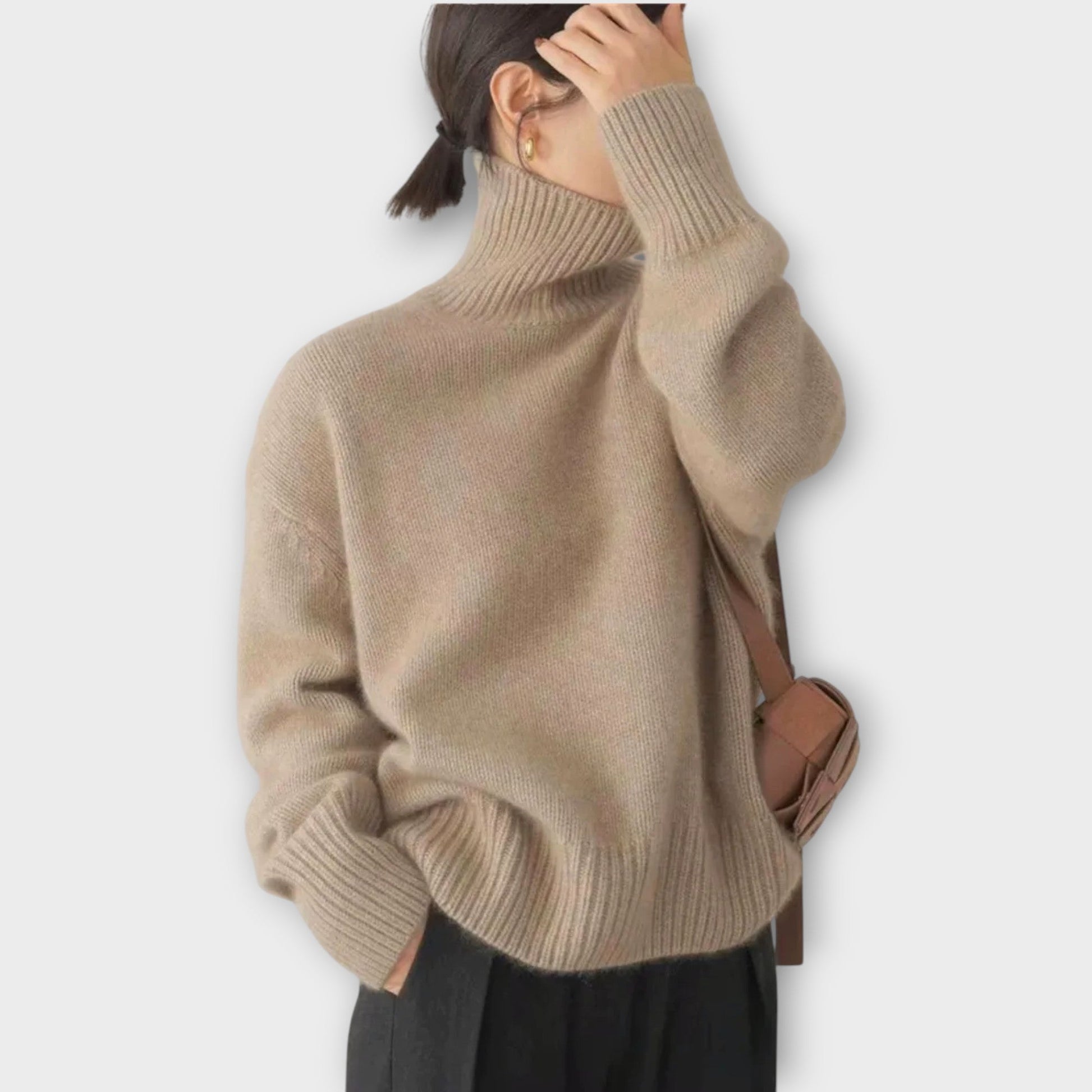 ✔️ Elegant høj krave – Giver varme, komfort og en sofistikeret silhuet.